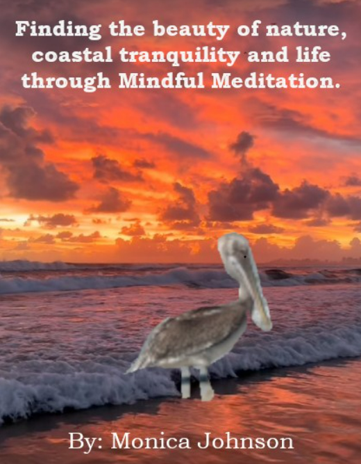 The creation of this book cover evolved from two separate photos I personally took on my Apple iPhone 16. Both photos were taken during Summer of 2025, but at different dates and different times of the day. Both photos were taken at North Redington Beach, FL. I used GIMP for both photos, and the creation of this book cover image. I often use my time at the beach to mindfully meditate, and the ocean waves, the warm colored sunsetting sky and Pelicans are truly my favorite things that help me in this. I wanted to incorporate all of these components into my book cover.